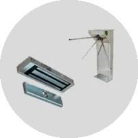 Для пропуска персонала используют электромагнитные и электромеханические замки, или турникеты.